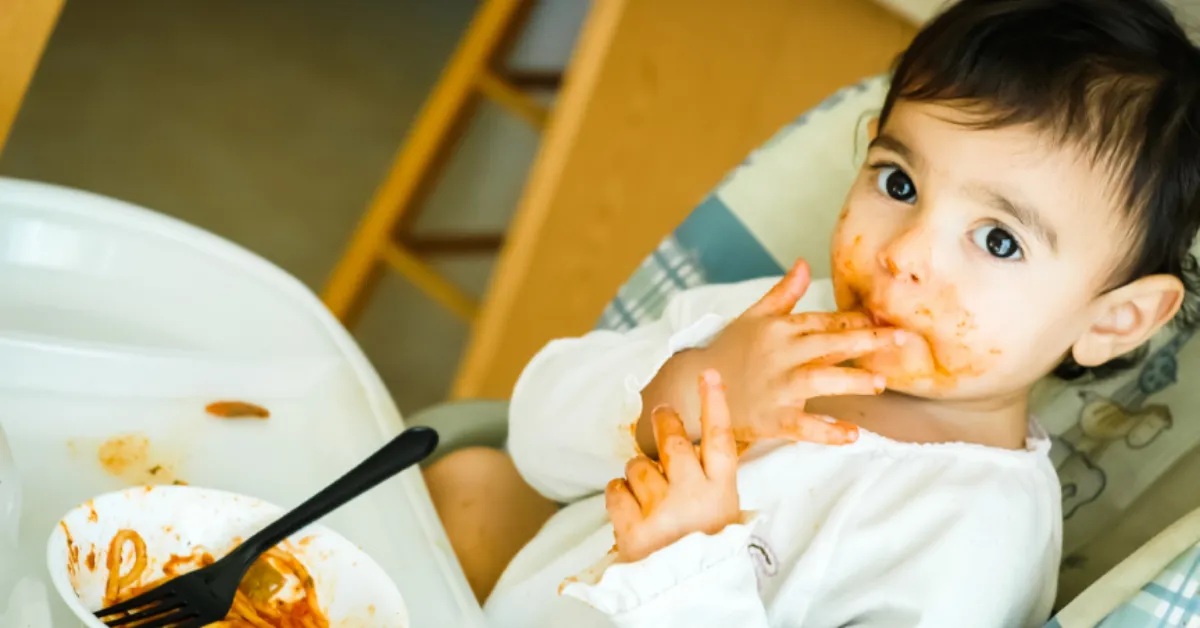 Make sure that your baby's back is straight and not reclined. Some chair have reclinable backs which pose a choking risk to your baby. Not to mention it will make it difficult for them to see the food on their table, explore, and eat independently. We want to ensure a straight back, and proper foot support to ensure the knees are flexed at 90º. This will allow your child to maintain their balance and easily find support and stability while eating.